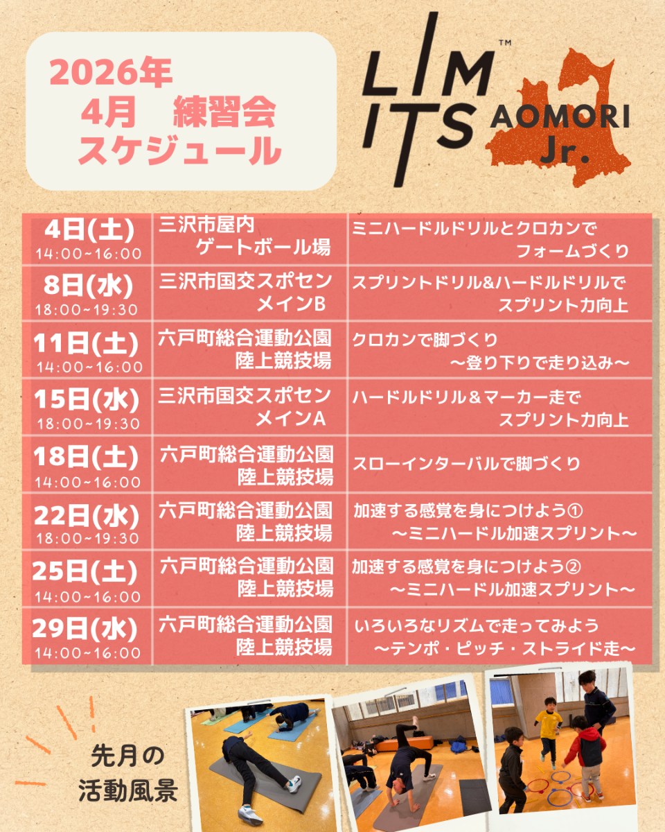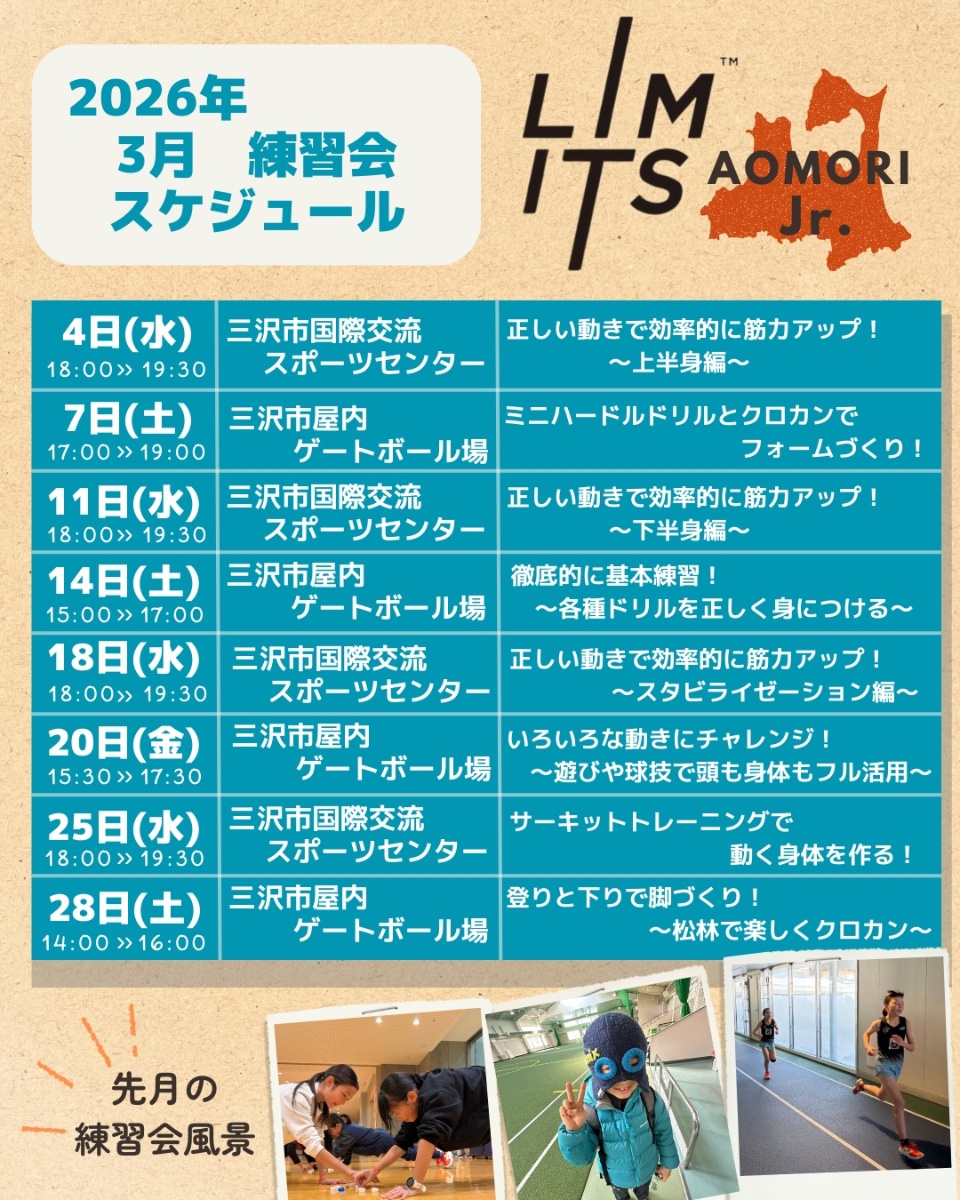 未来あるこどもたちの身体能力開発! 走ることを楽しく学んでいただきます。 LIMITS Jr.は、ジュニア世代がスポーツの楽しさを体験できる環境を提供します。