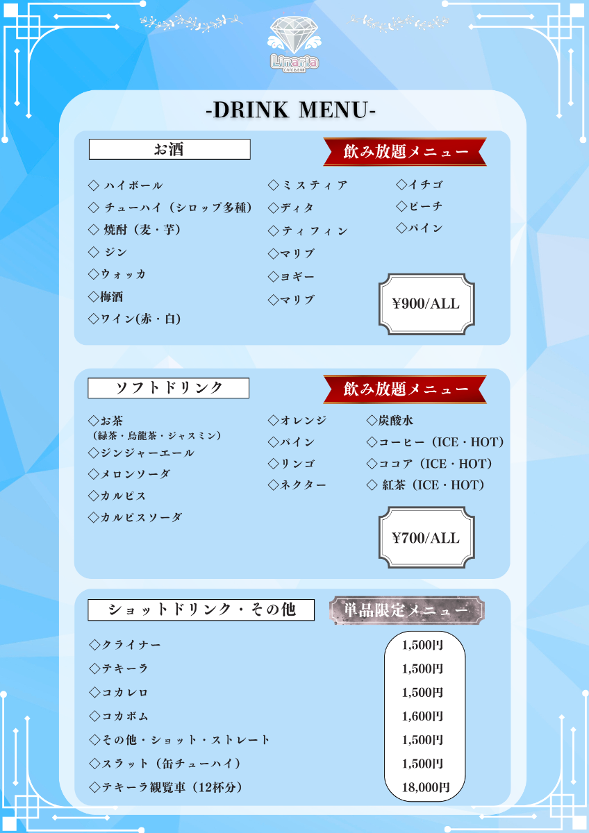 💎Linaria メニュー表💎