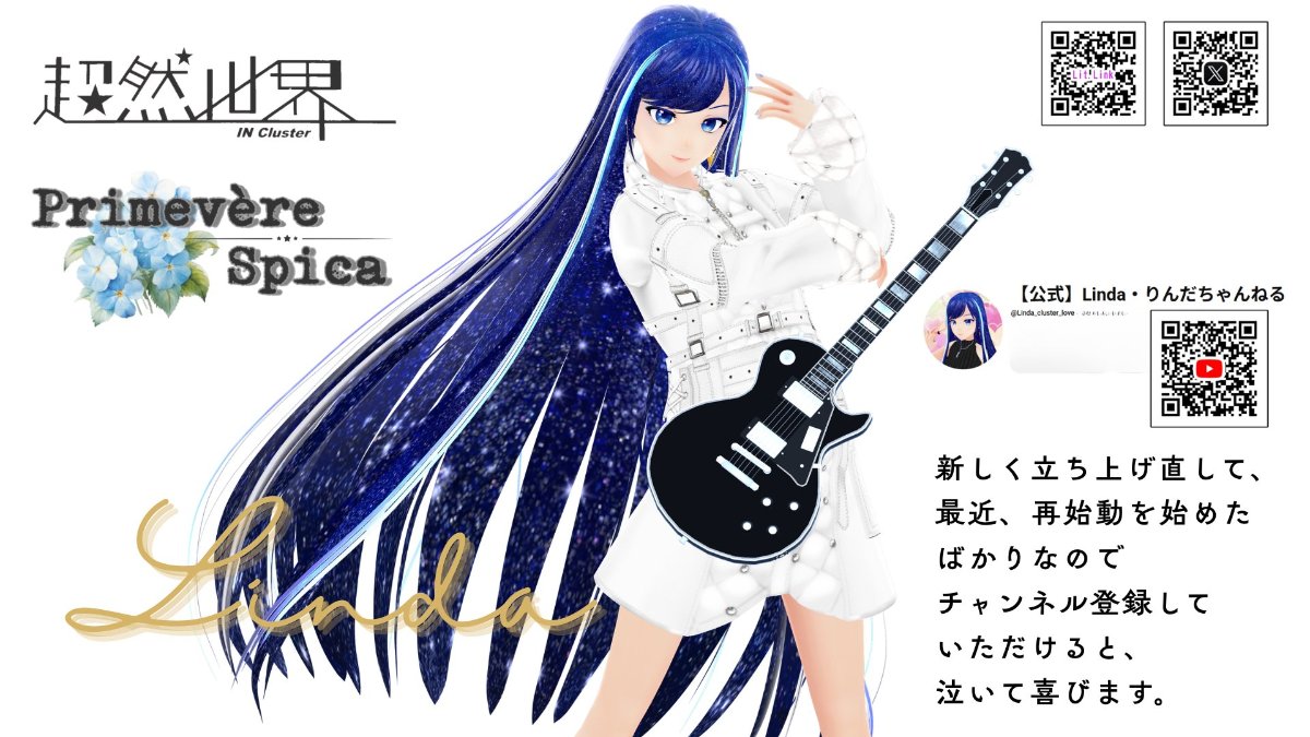 GIRLS BAND PROJECT『超然世界』でギター&ボーカルを担当しているバーチャルアイドル『Linda』です♡ メタバースプラットホーム「cluster」を中心に活動中