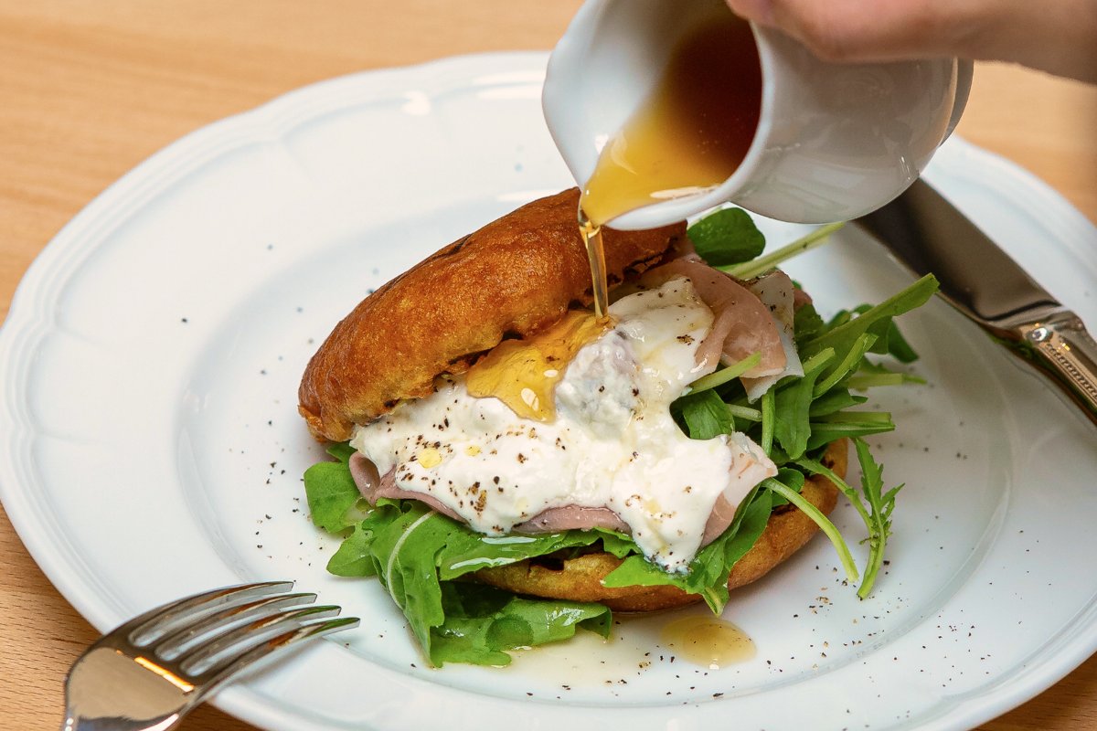 ハモンセラーノとストラッチャテッラのブリオッシュドーナツサンド