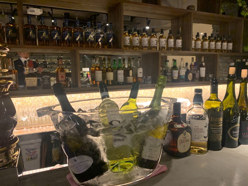 イタリア産のワイン、シャンパンはもちろん、、料理に合わせ、マリアージュを楽しんでいただける各地方のワインもセレクトさせていただきます。また、「Ao(碧)」や、「知多」を初め、その他シングルモルトや、バーボンなどのウィスキーも各種ご用意しております。
