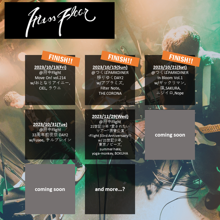 10/31(tue)府中Flight11/29(wed)府中Flight12/9(sat)Secret12/28(thu) Secret1/21(sun)Secret1/27(sat)Secret