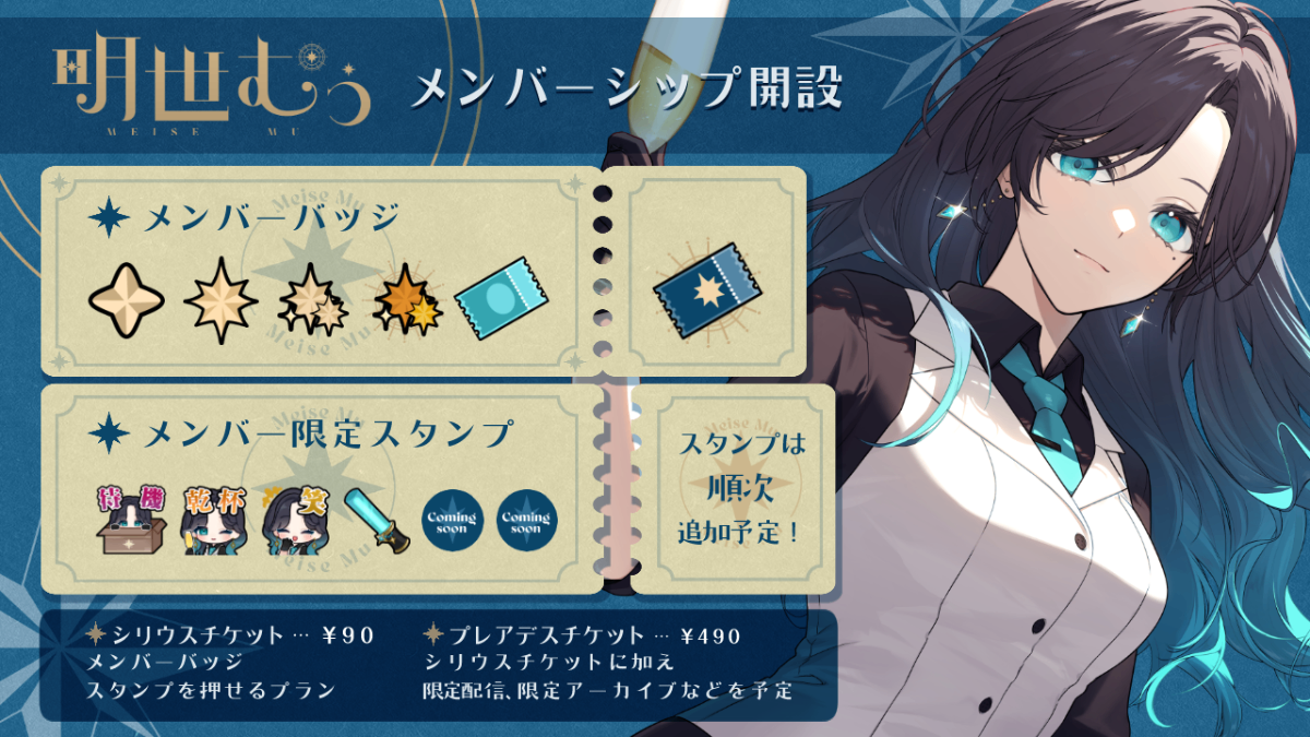・メインキービジュアルみり 様https://x.com/millicommi・Live2D有里ユイ 様https://x.com/83yui87・ロゴ、配信画面、スケジュール表デザインMinozKi|mooncape 様https://x.com/minozki_i・シチュエーションボイスロゴmouton 様https://x.com/mou_mouton・Emote椏埼らと 様(AsagiRat)・ループアニメーション冷凍レーズン 様・EDアニメーションᴍᴀɴɪ様https://x.com/eto_enlat・スタンプ/バッジイラストきーろ 様https://x.com/ki_ro_iroiro・プロフィール画像やメンシ紹介画像/一部サムネイル等白井にゃも 様https://x.com/nyamo461規約