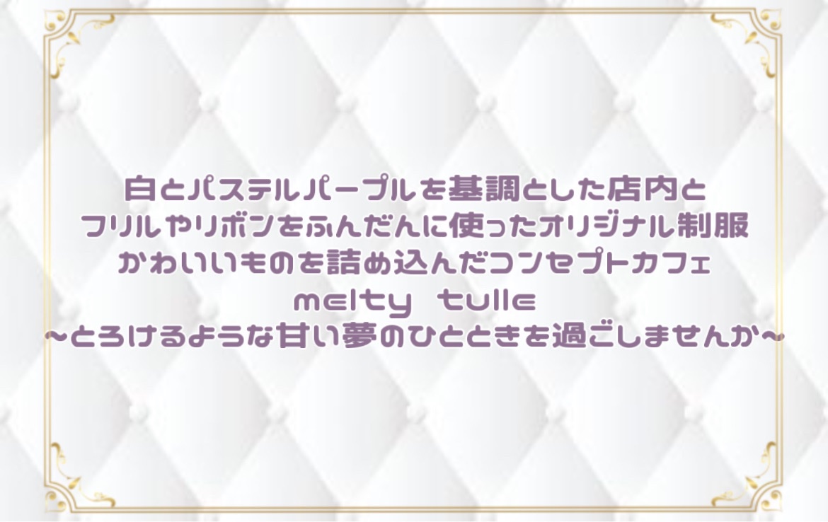 ♡正統派コンセプトカフェmelty tulle♡ 平日▶︎▷17-22|土日祝▶︎▷12-22 金・土のみバータイム翌3時までオープンしています🫧𓂃𓈒𓏸