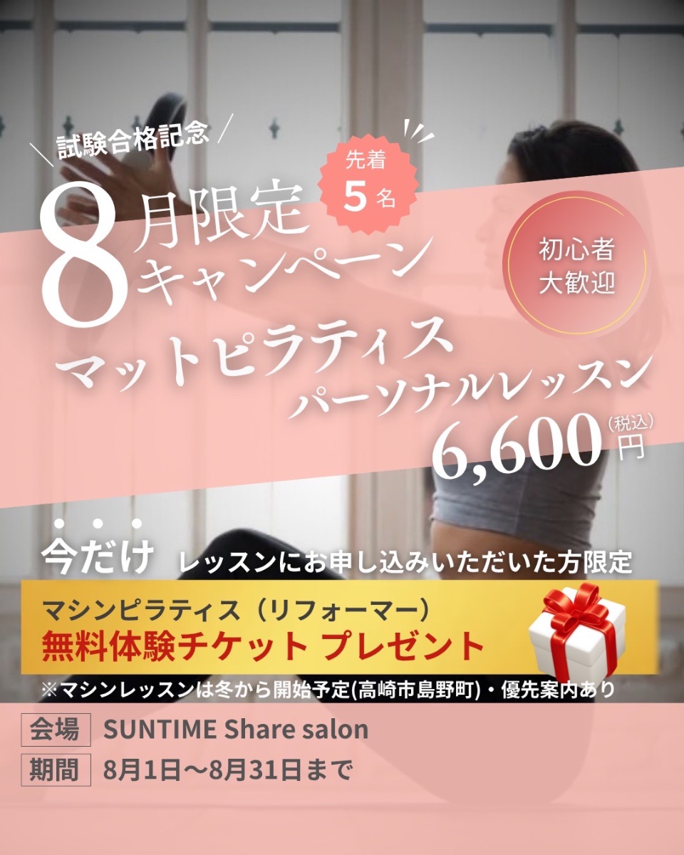 こんにちは! 高崎市で初となる、POPPILATES/FLOPILATESインストラクターのMegumiです。 音楽に合わせて動く、新感覚の進化系ピラティスで姿勢を改善! 一緒に年齢に負けない体づくりをしていきませんか?