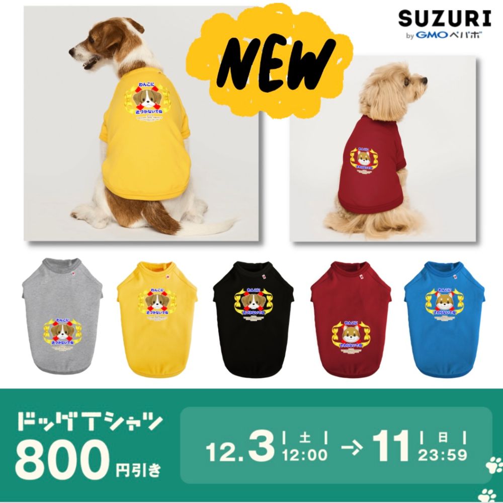 オリジナルチャリティーショップSUZURIにて待望のドッグTシャツ新登場!
