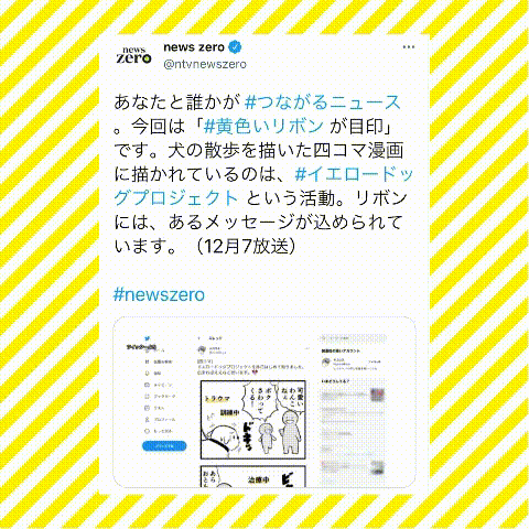 日本テレビ news zero様 番組内#つながるニュースにて、ネットで話題のニュースとしてネコロス様の漫画とイエロードッグプロジェクトを取り上げていただきました。放送前には日本テレビ様よりニュースにする上でご相談いただき、また、翌日にはお礼のお電話もいただきました🙏まいどなニュース様からネコロス様へ、そして全国ネットのニュース番組へ!イエロードッグプロジェクトを取り上げて下さり、ありがとうございます🙏代表が、まいどなニュース様の取材を受けました