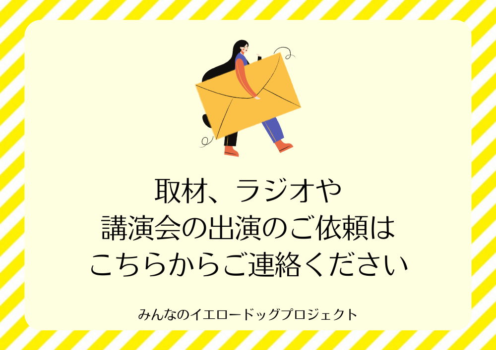 愛犬家の間でもほとんど知られていなかった「イエロードッグプロジェクト」、様々なメディアで取り上げられるようになったのは代表が取材を受けた、まいどなニュース様の記事から始まりました。