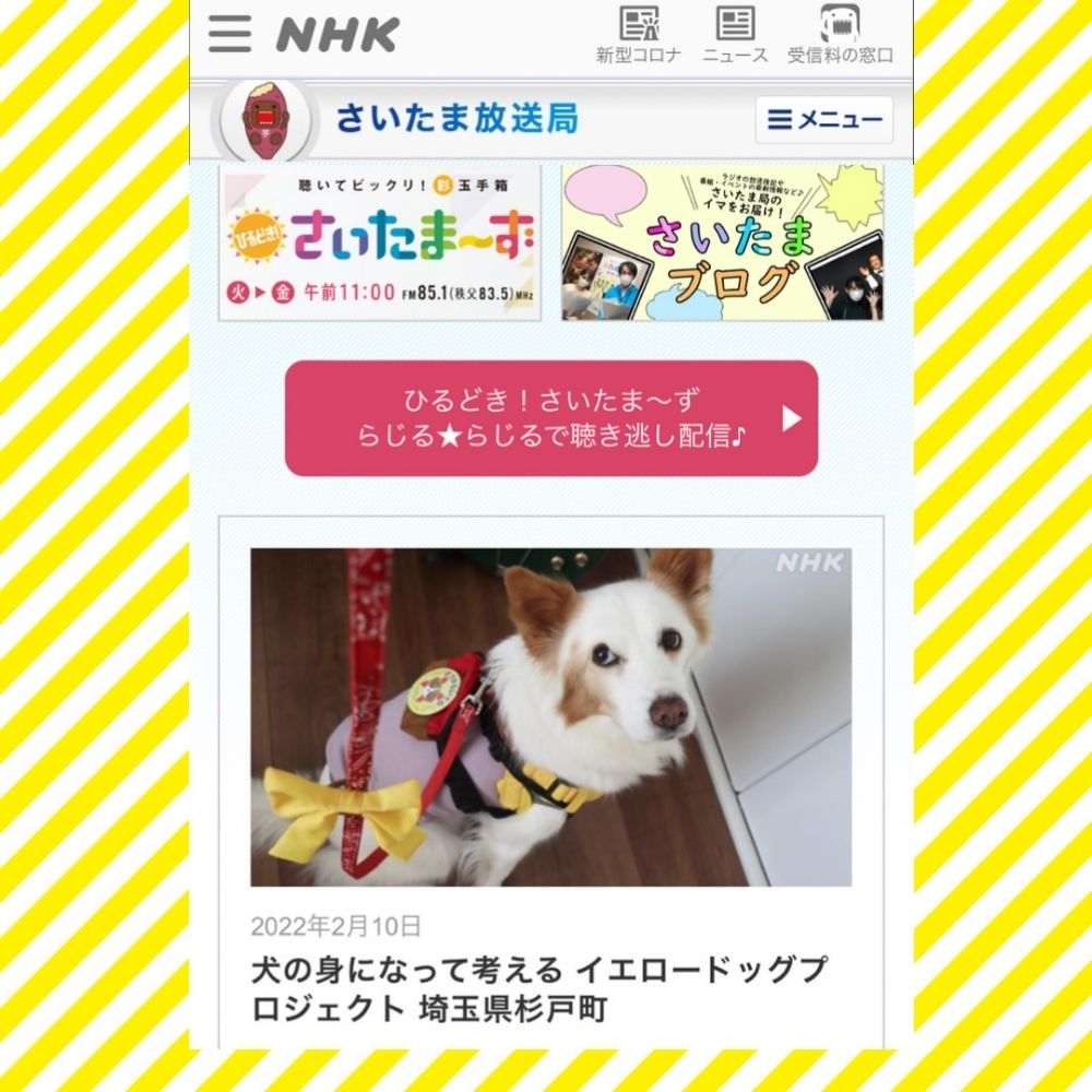 彩ニュース様の取材を受けました!YouTube🎬イエロードッグプロジェクト『犬に黄色いリボン見たことある?』動画ぜひご覧ください🎗️