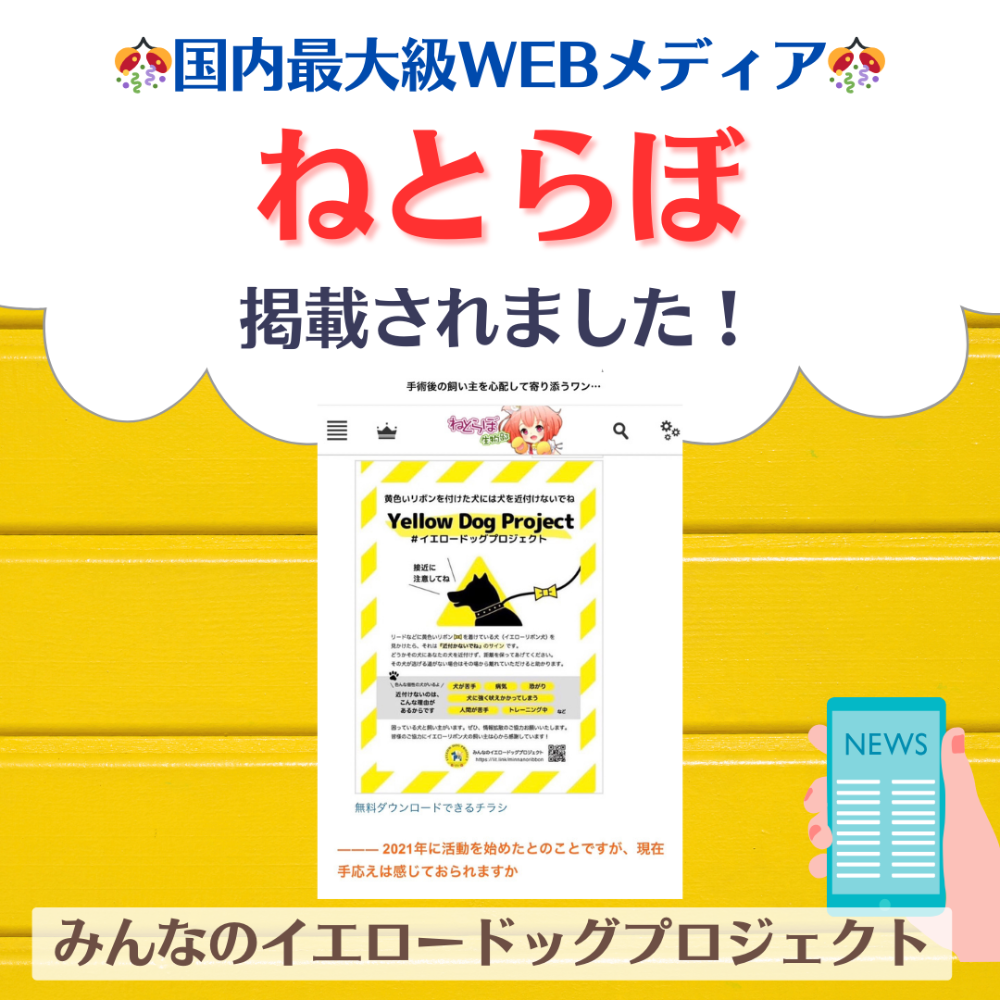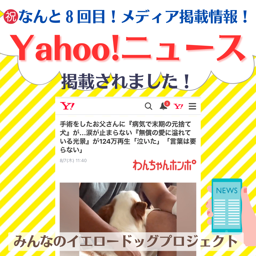 「イエロードッグプロジェクト」は、こちらの記事で大きな話題となり、また、大きな反響もいただきました。「知らなかった」「かつての愛犬にも必要だったかも」等々、記事に付いたコメントから教えていただいたことが、私共のこれからの活動へのエネルギーとなりました。Yahoo!ニュース様での掲載と多くの方に関心を寄せていただいたこと、心から感謝です🙏