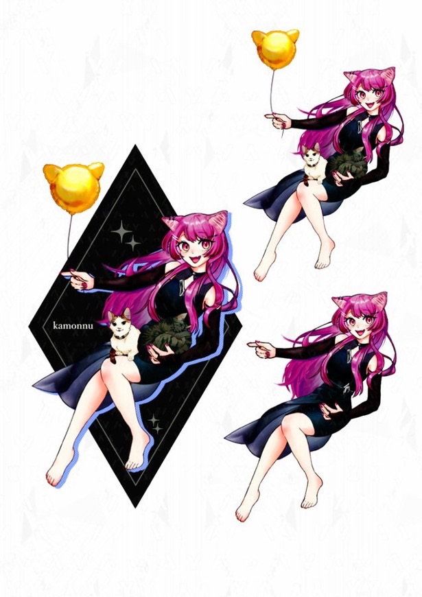 ペットとの配信も多い方なので構図は猫さんと。キャラとご本人様に対するリスペクトを兼ねて衣装の方を少し変更させていただきました。【ご依頼主(ライバー)】かもんぬ あおい 🚬様𝕏▶︎@kamonnu_LIVE【バッチ特典まとめ】
