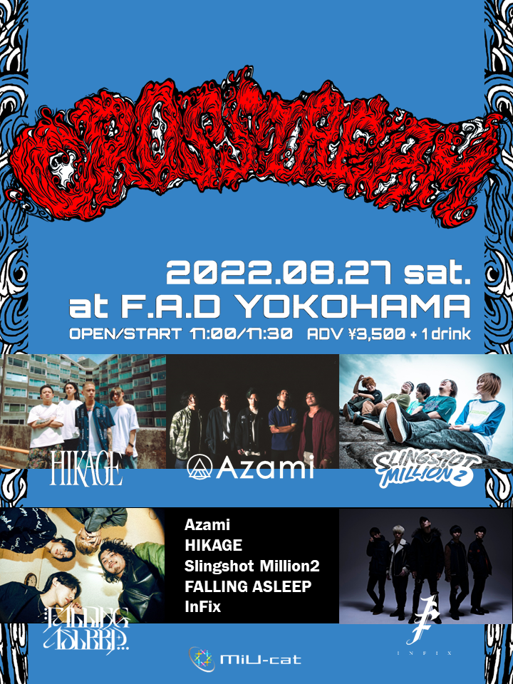 F.A.D End of Summer PARTY🥂“CROSSTREAM”2022/8/27(土) F.A.D YOKOHAMAAzamiHIKAGESlingshot Million2FALLING ASLEEPInFix