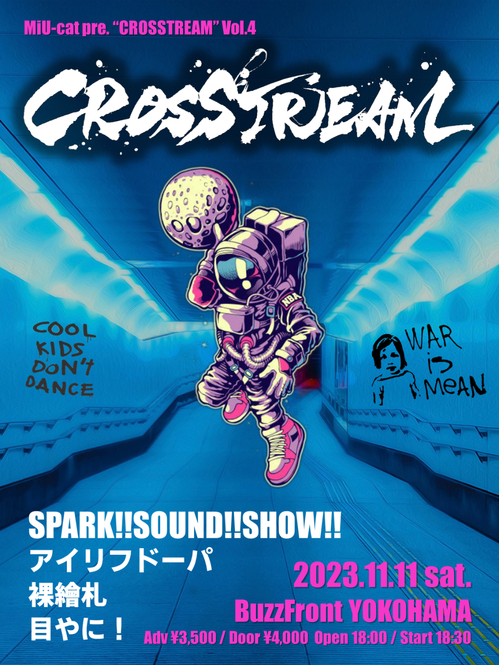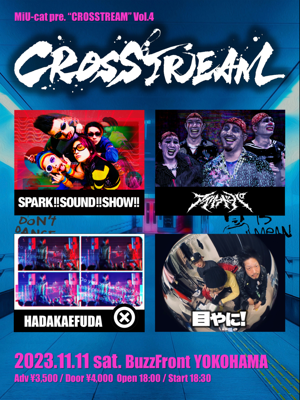 MiU-cat pre."CROSSTREAM” Vol.4【出演】SPARK!!SOUND!!SHOW!!アイリフドーパ裸繪札目やに!2023/11/11(土) BuzzFront YOKOHAMA 開場 18:00 / 開演 18:30前売 ¥3,500 / 当日 ¥4,000 +入場時1D🎫チケット購入下記よりhttps://t.livepocket.jp/e/crosstream4