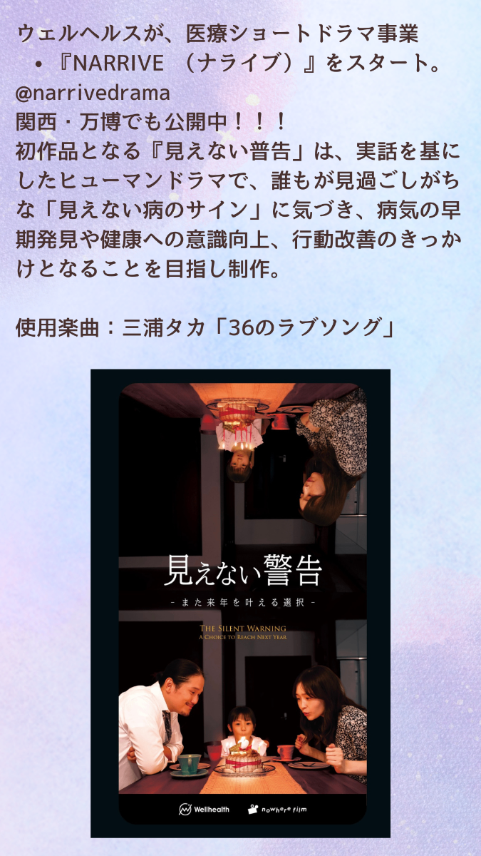 Newアルバム『革新的スローリー』にも収録されている「36のラブソング」を使っていただいています🎶関西 万博でも流れているようです!ぜひ、このショートドラマをチェック✅してみてくださいね😊✨️