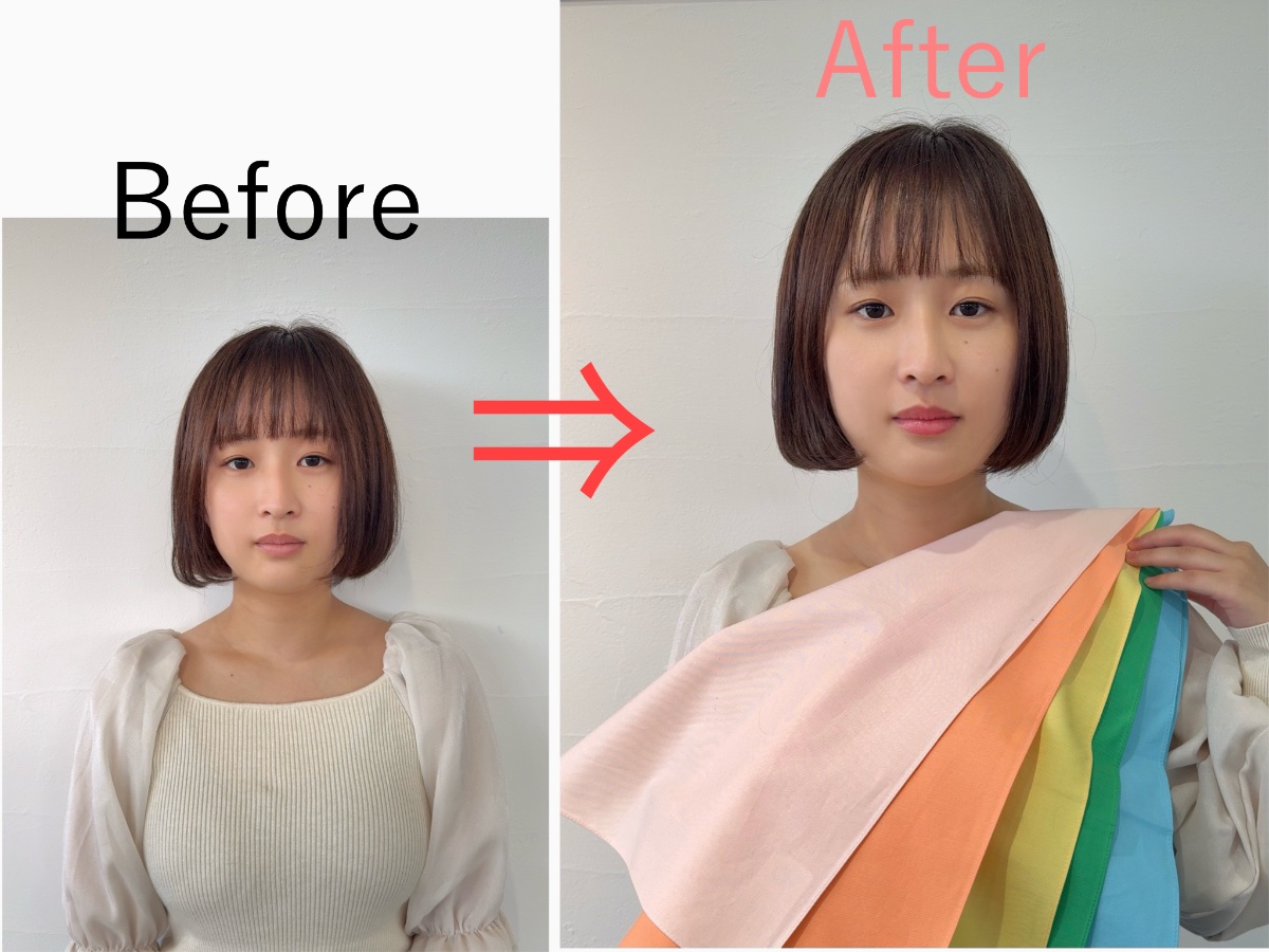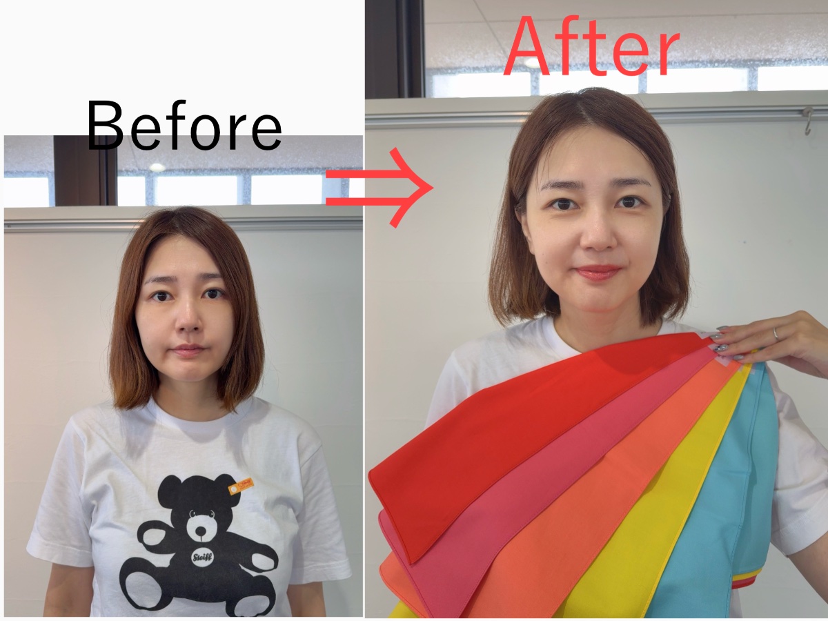 リップのみ作成し、塗りました!ベストカラーのドレープと合わせると、パッとお顔が明るくなり、生き生きとした印象に♡♡