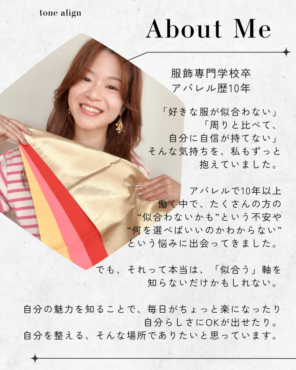 “似合う”は、あなたの味方になる💐 着るたびに「わたし、これ好き」と思える服へ 苦手な服も”似合わせ”で武器に🪄 大人のファッション迷子さんに寄り添います