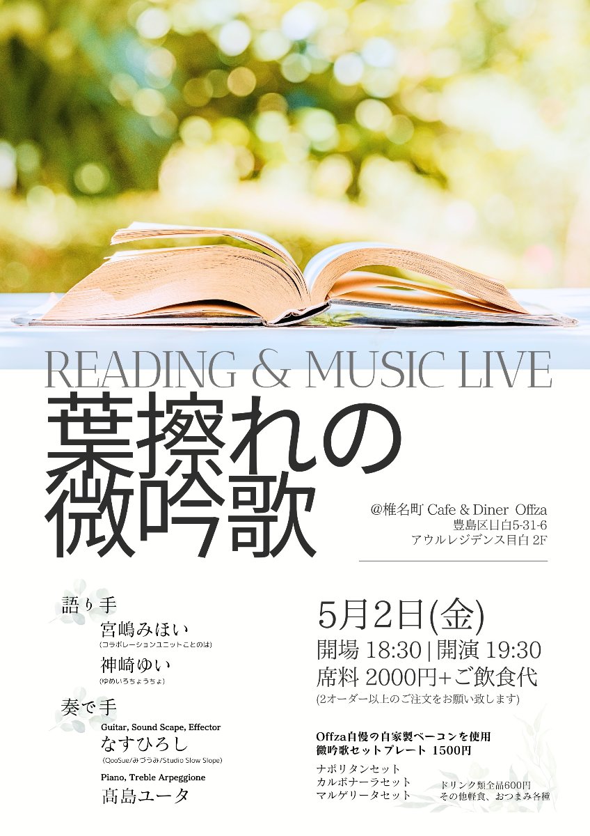 ご予約は下記スケジュールボタン先のメールアドレス宛に「ライブ日時、お名前、ご来場人数」をお知らせください。