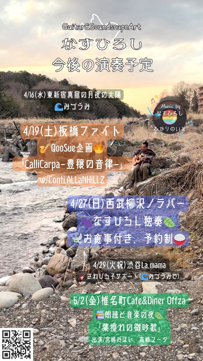 ギター、民族楽器、自作楽器、自然音。あらゆる”音”で日常と非日常の風景に彩りを添える音楽家。東京を拠点に、ライブ演奏の他、劇伴音楽作曲やサポート演奏、録音、Mixなど多岐に渡って音楽に携わっている。Band : QooSue / みづうみProduction : Studio Slow Slope“ひかりのいと”