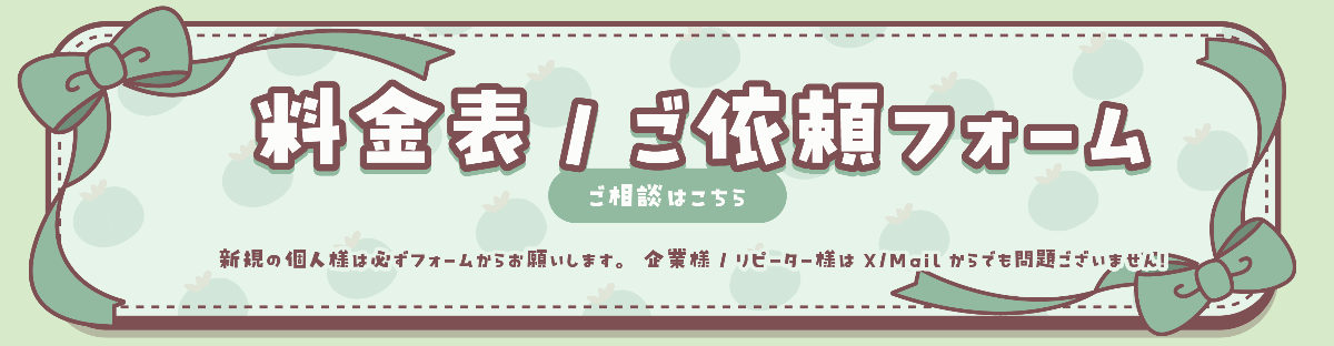 通常依頼:受付休止中(12月に2026年1月下旬〜の受付再開予定)