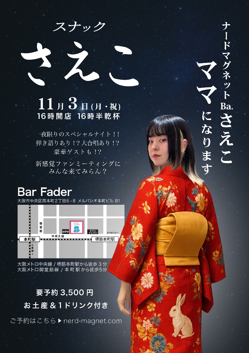 🐰 Ba.さえこ…11/3(月祝)スナックのママに!?