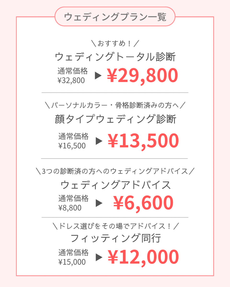 ウェディングプランの特別価格は、年内にご予約(ご入金)いただいた分までで終了とさせていただきます。