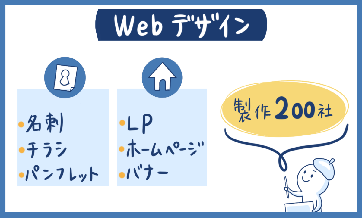 ホームページやLPなどのウェブページをはじめ、名刺や資料などのデザインを制作。これまで200社以上の制作に携わってまいりました。