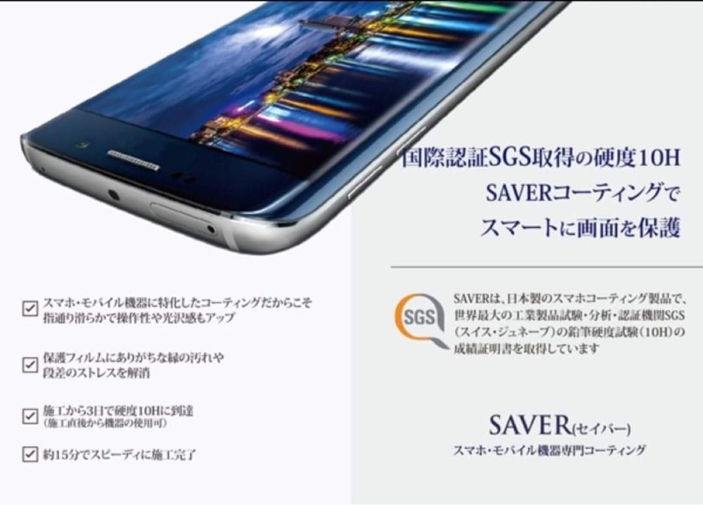 現在は、スマホなどモバイル機器のSAVER施工を行っています。 予約は随時承っています。 画面のガラスコーティングでプラスチック削減などエコで環境保護にもつながります。 機種変した際には是非♪
