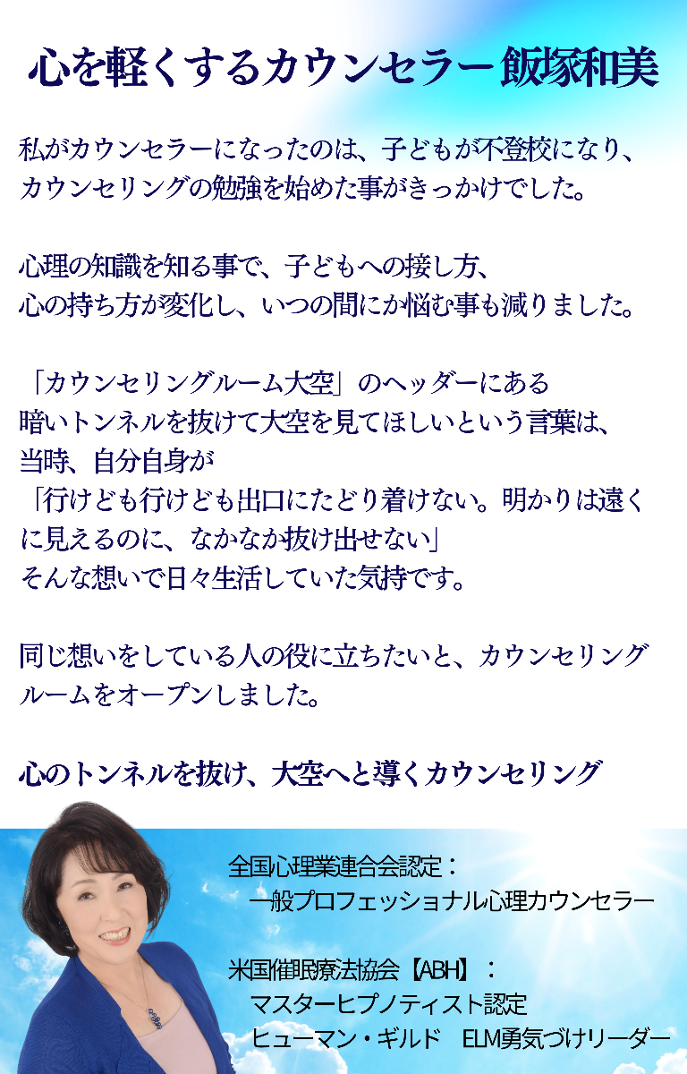 ”明るく楽しくラクになる!”心を軽くするカウンセラー 飯塚和美