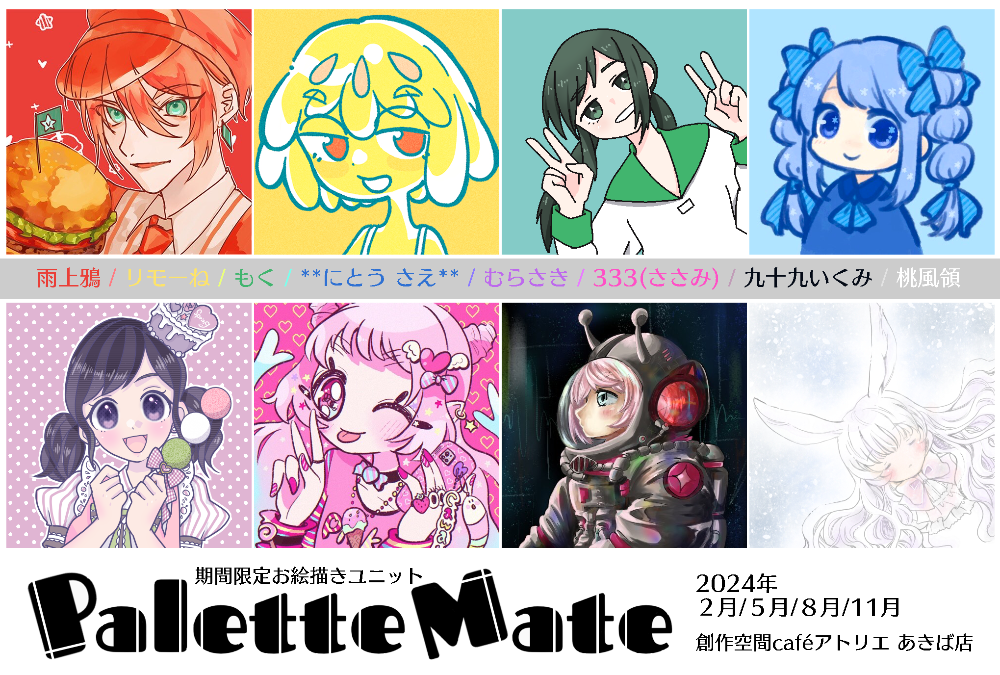 担当カラーを決めて活動する、期間限定のお絵描きユニットです🎨担当カラーと各会のテーマ【春夏秋冬】に合わせた作品の展示を行います。色の持つ個性と、作家自身の個性から創り出される作品をどうぞお楽しみください。