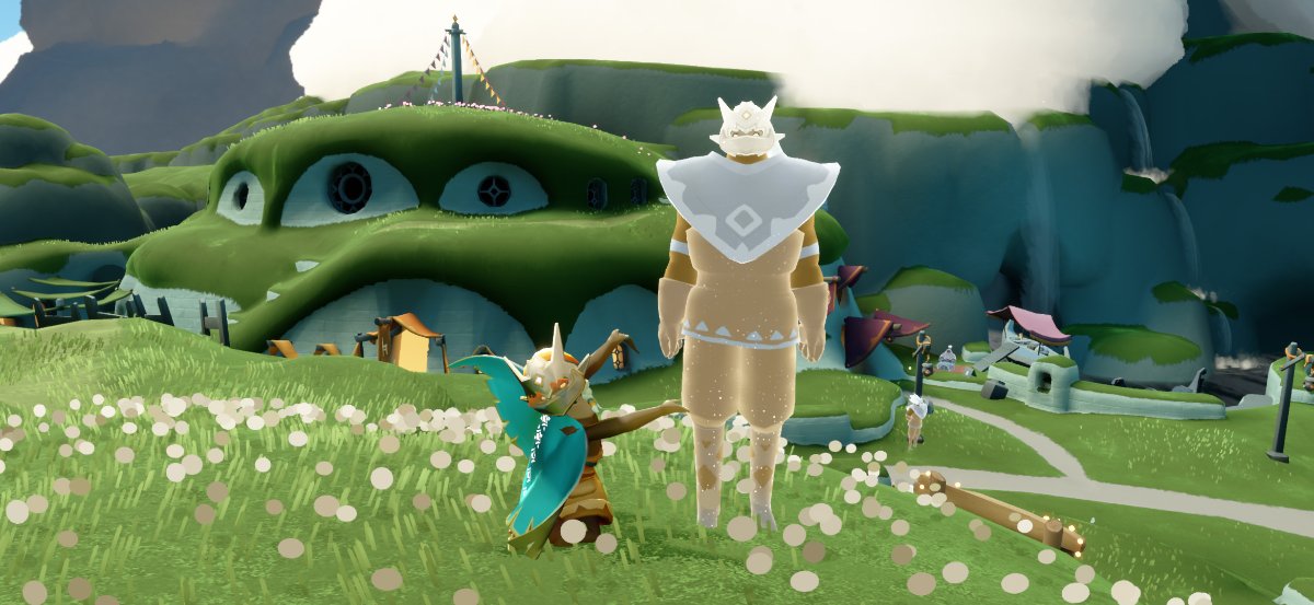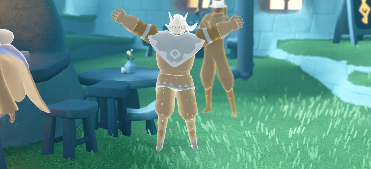 pekoeくんの標準装備は、捨て地フルフェイス・昏倒する戦士の髪型・ならいの耳飾り・恒常パジャマズボン・復古のサンダル・アースケープ