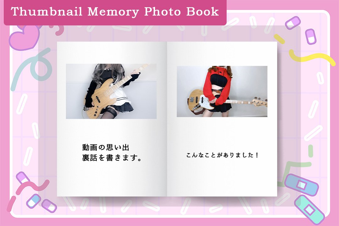- [Thumbnail Memory Photo Book]10,000 yen / Unlimited- Limited to crowdfunding!It's a collection of thumbnails of Pinyo's past performance videos♡I'll carefully select from over 200 videos posted so far and create it with comments about memory from the time of shooting!Number of pages: 24 pages