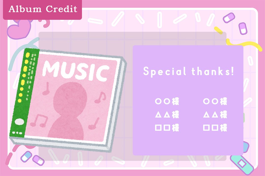- [Album Credit]Price: 5,000 yen / Limited to 20- Have your name, company name, or organization name listed in the "Special thanks" section on the lyrics card of the mini-album ♡Now everyone is a comrade!*Note: The mini-album itself is not included.Both Crowdfunding limited edition design albums and regular editions will have the credit listed.[Rules for Listed Names]- Up to 10 full-width characters (20 half-width characters).- Emojis, symbols, and device-dependent characters are not allowed.- Names that violate public order and morals, infringe on intellectual property rights, or are deemed inappropriate by us may not be listed. Thank you for your understanding.*Note: If you purchase multiple items, the same name will only be listed once.If you want different names listed for multiple items, please fill in the designated field with the respective names.