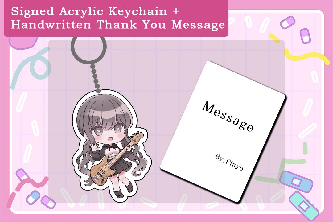 - [Signed Acrylic Keychain + Handwritten Thank You Message]2,500 yen / Limited to 100- An acrylic keychain signed by Pinyo and a handwritten thank you message set♡I'll write each one with all my heart!*Note: Handwritten thank-you messages will be in the form of a letter, not an image.