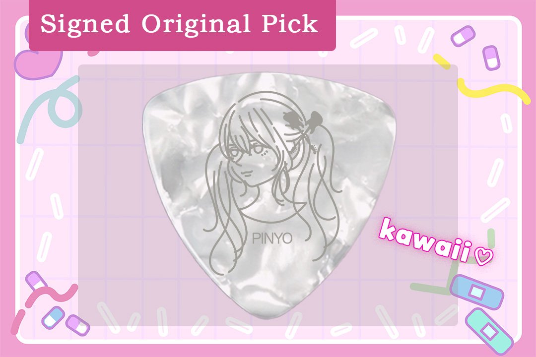 - [Signed Original Pick] 1,500 yen / Unlimited- You'll receive a Pinyo original design pick with a signature♡Actually, I drew this illustration too! Of course, the hair accessory is the bass!