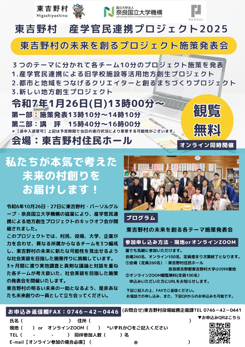 2025.01.26【東吉野村・パーソルグループ・奈良国立大学機構】産学官民連携プロジェクト施策発表会を開催!