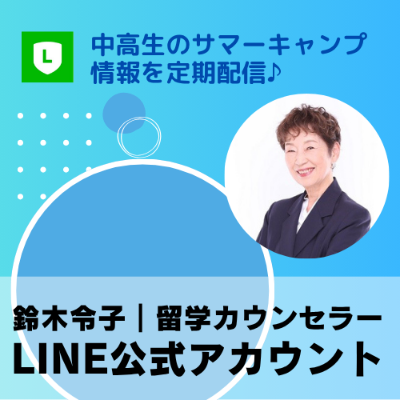 留学カウンセラーの鈴木令子です。 小学生・中学生・高校生のお子様の 海外サマーキャンプ・留学をサポートしています。