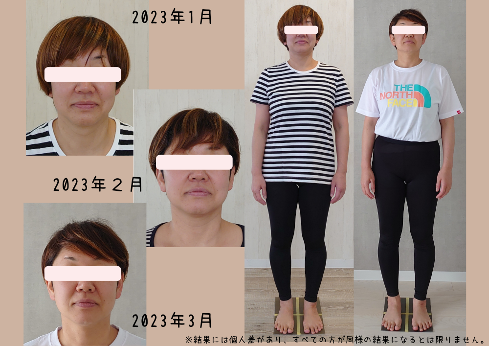 体感はもちろんですが、写真で見るとさらに実感しますね!鼻の穴もホントや!とびっくりでした。 呼吸、しやすいです。背中側の肺に沢山空気が入るようになりました!そして体幹の動きが軽いです。あと、帰りは歩く時に足首をまげて蹴り出して歩いていることに気づきました。これまではペンギンみたに足首をまげてないなと感じていたので。 ちなみに最近「痩せた?」と言われるし、首の前側のシワがうすくなってきてて、2本あるうち下側は消えました!やったー セッションの時はうまくお伝えできませんでしたが、さびきよさんは方だに寄り添って伴走してくださる感じがして、とても心強いです!