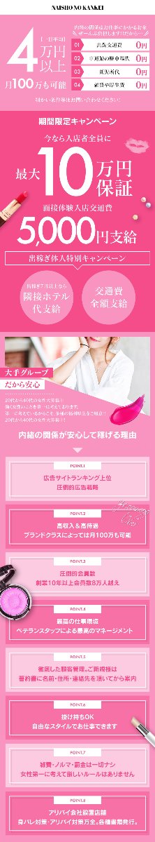 広告サイト地域トップ人妻店。 在籍の8割が未経験からスタート・関東最大の老舗デリヘルグループ! 関東最大の老舗デリヘルグループなので、どこにも負けない集客力と会員数。 顧客管理も完璧です。最新のシステムを導入。大手ならではの待遇や福利厚生、保証により安心して働ける事をお約束 圧倒的な集客力と安心して働けるシステムを搭載。、顧客評価システムや身バレ対策も万全!!在籍女性が口を揃えて言う客層の良さ!!安心安全がここにあります!! 一緒に働いてくれる女の子を募集中です💓