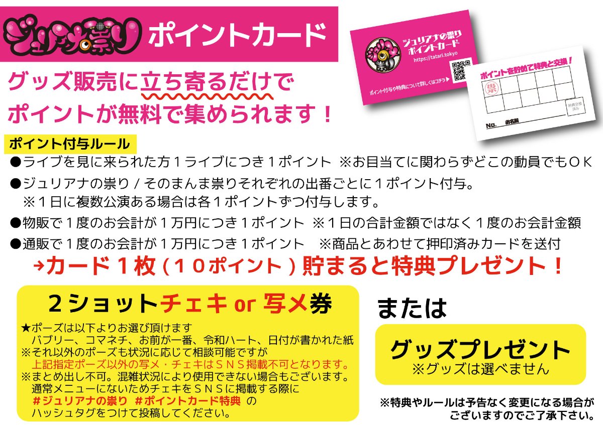 ・物販場所はジュリアナの祟りと同じ列にそのまんまお並び下さい!・ジュリアナの祟りポイントカードがそのまんまお使い頂けます!2組の出演がある日はポイント2倍!!・グッズは通販でもそのまんま発売中!ーお問合せー