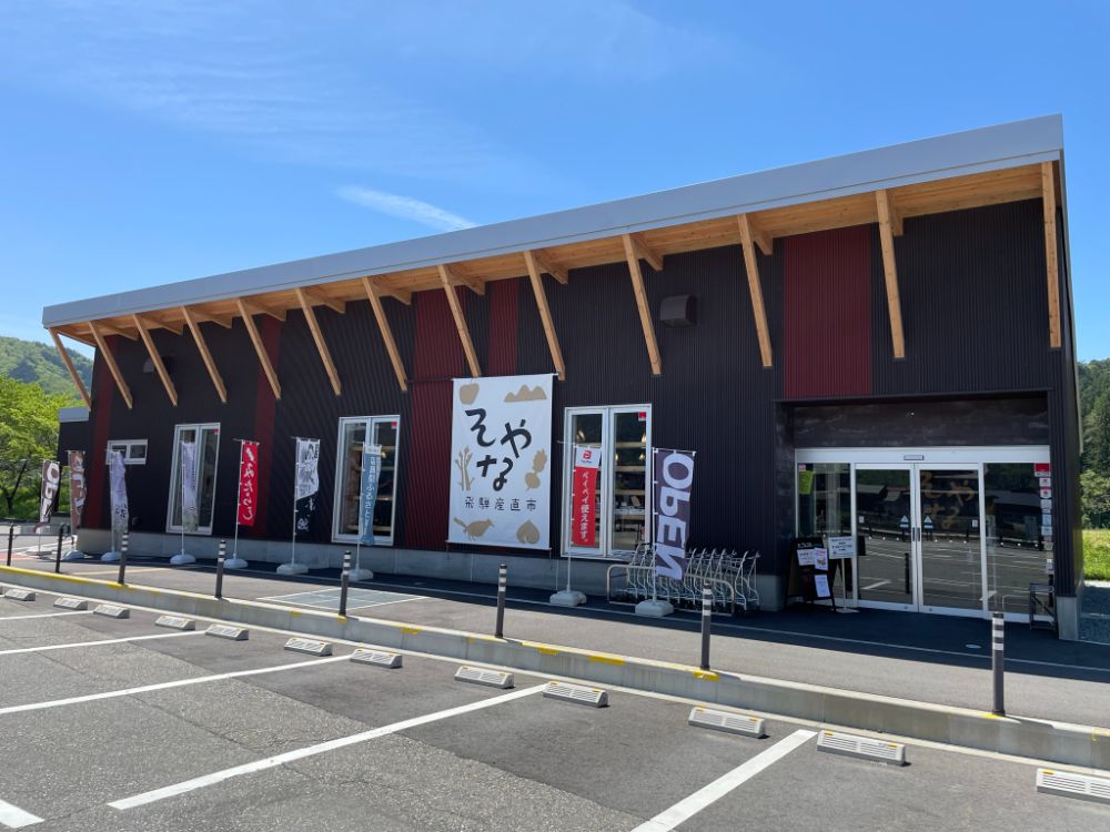「道の駅アルプ飛騨古川」敷地内に令和4年7月にオープンした飛騨野菜の直売所です。毎朝入荷する新鮮な野菜・果物の他に、飛騨の特産品、お土産品、地酒、クラフトビールなど販売しています。この他、名物店長「トマト店長」が推す全国の逸ピンコーナーもおすすめです♪ また、えごま五平餅や飛騨牛コロッケなどテイクアウトできるコーナーもございます! ぜひ遊びにいらして下さいね♪