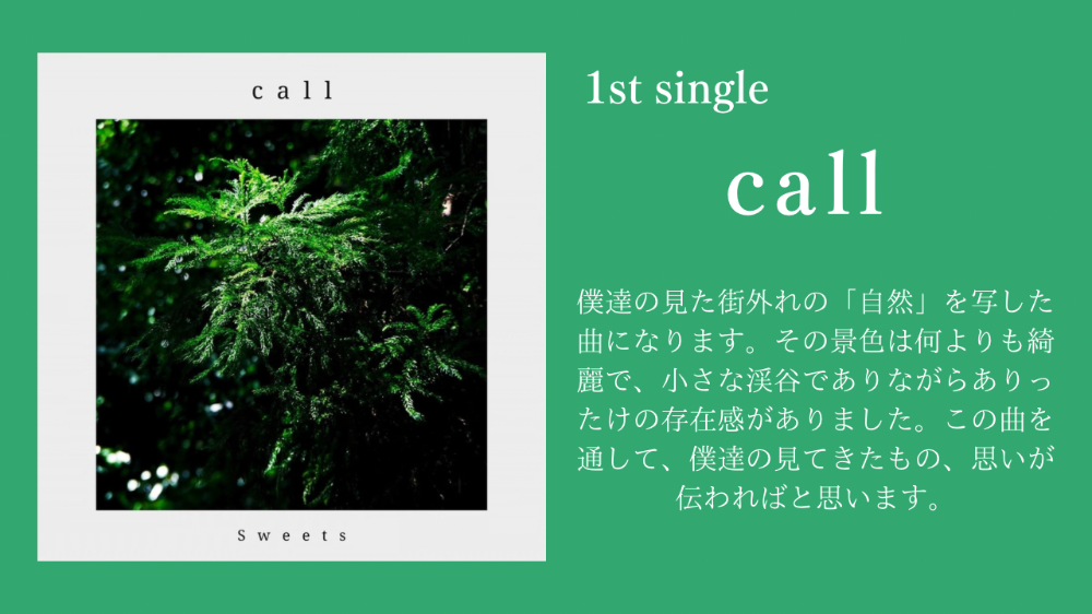 「音楽で創る、それぞれの幸せが溢れる世界」 をモットーに活動するポップ・ロックバンド。 一度聞けばヤミツキになる”Sweets Pop”をご堪能あれ。