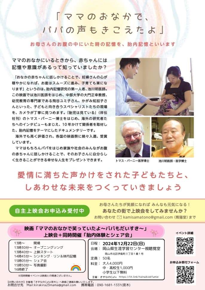 子どもたちが教えてくれた生まれる前のお話おなかの中で子どもたちは何を思っていたのでしょう?みんなが幸せな気持ちになるおすすめの映画です!お申込みフォーム https://ws.formzu.net/dist/S753304363/