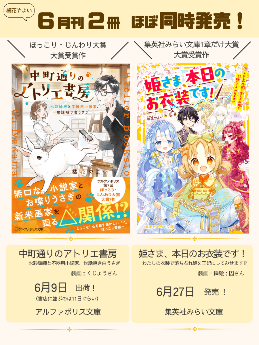 橘花(たちばな)やよいです。 心が「ぎゅっ」として「ほっ」とする話が大好き。
