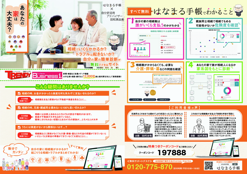 紹介動画 <40歳以上の方に見てほしい!>- 【相続】簡単無調診断サイト はなまる手帳特典付きクーポンコード【197888】