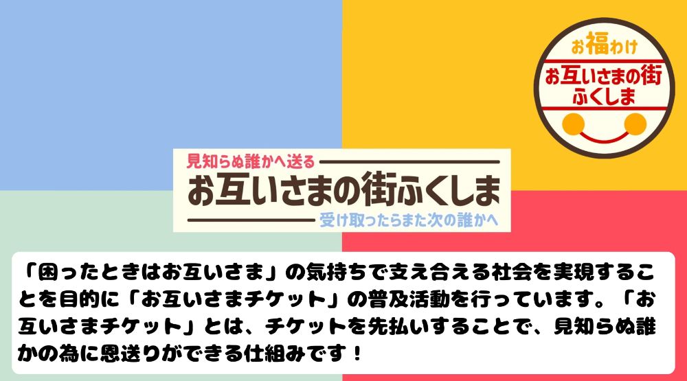 災害被災地域での復興支援に関する事業、福島から日本を元気にする事業を行い、すべての人々が夢と志を持って最幸の人生を送ることができる社会の実現に寄与することを目的に活動しております。