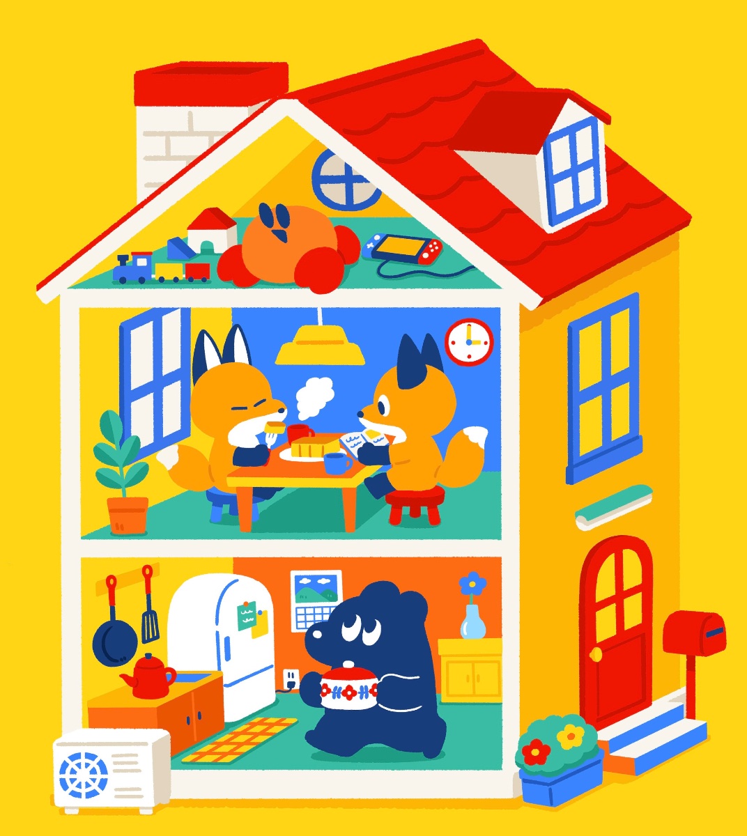 「クマとカニ」などオリジナルの 動物キャラクターを描いているイラストレーター。 ポップな色使いが得意です。