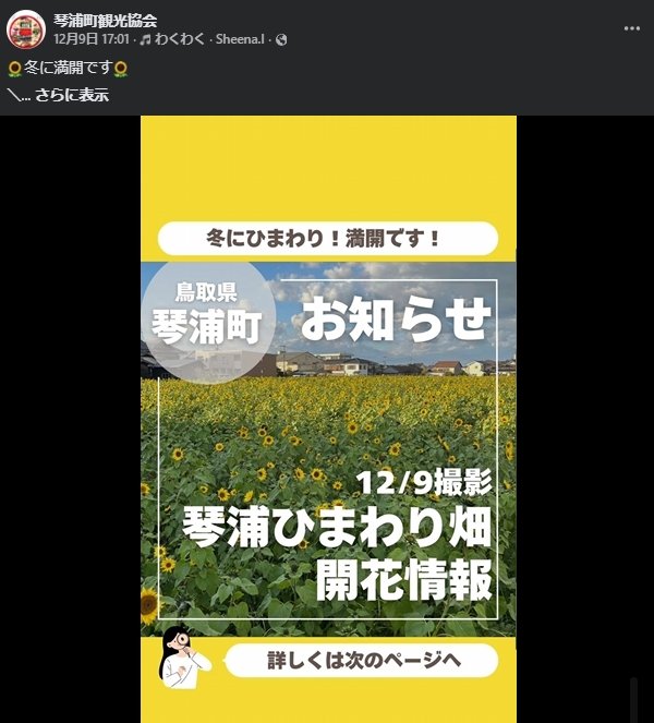琴浦町観光協会さんが冬の琴浦ひまわり畑を取り上げて下さりました。鳥取ゾンタクラブ認証状伝達式