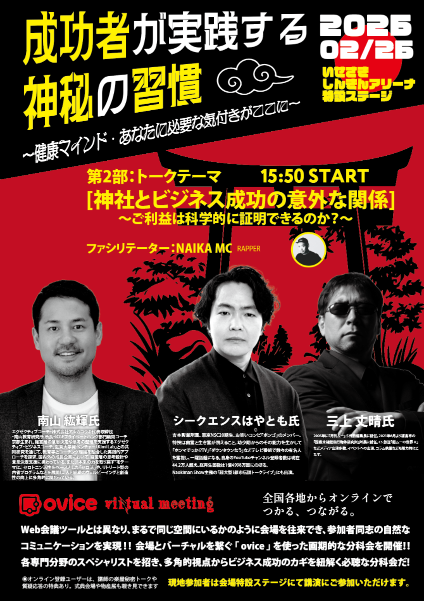 オンライン分科会・第二部登壇のシークエンスはやとも氏。よしもと興業所属の霊視芸人としてTVをはじめ様々なメディアで活躍中。霊が視えることで知られ、「視えすぎ芸人」とも呼ばれています。YouTube / 三上丈晴】月刊『ムー』編集長が語る!!神が降り立つ場所は〇〇県だった