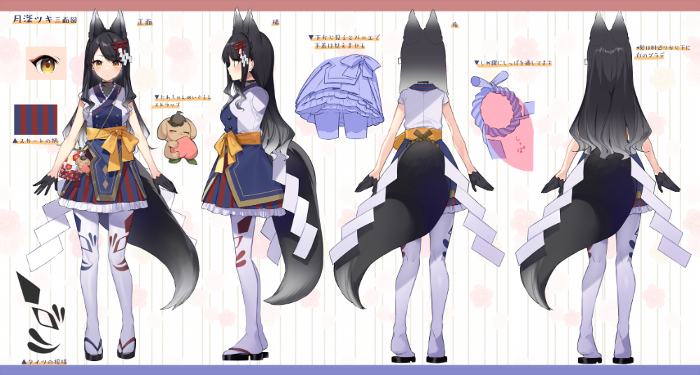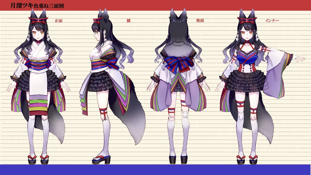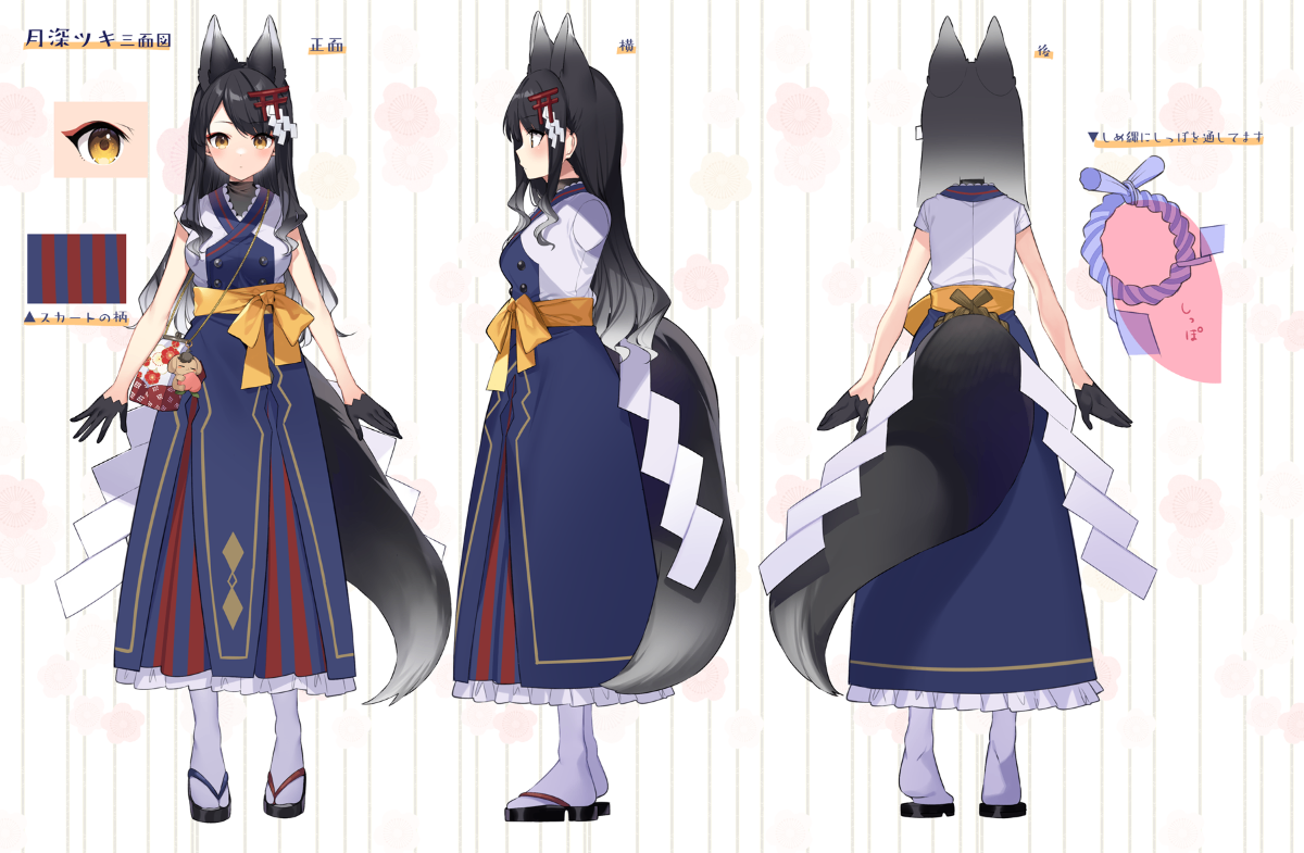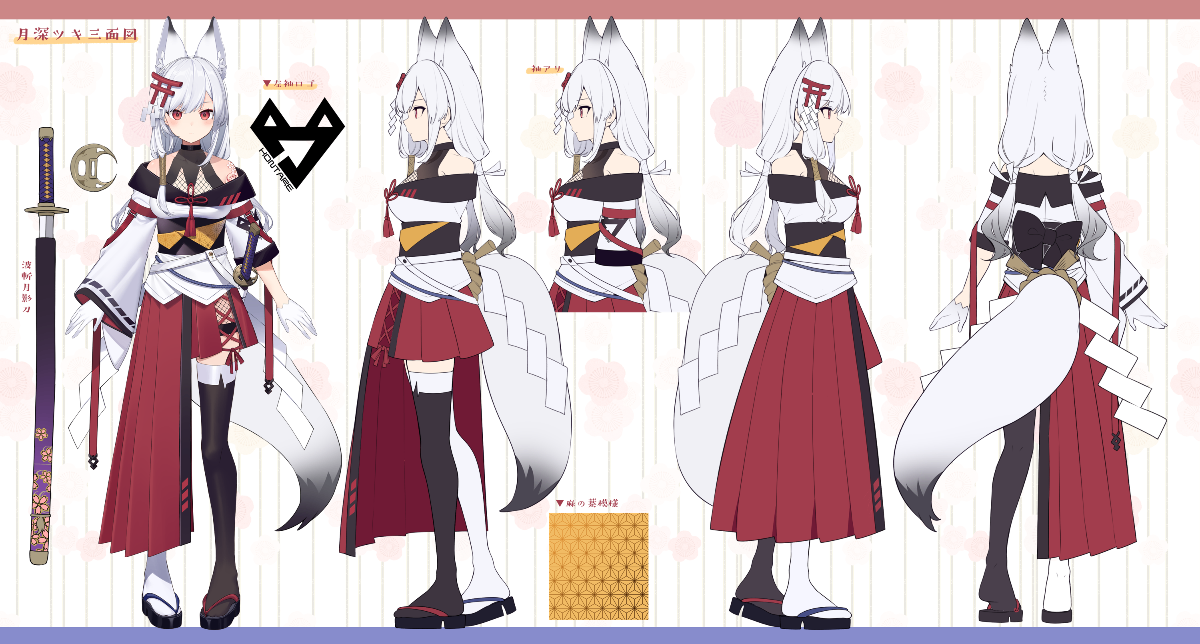 ▶︎名前 月深ツキ(ツキミ ツキ)▶︎誕生日 5/4(顕現記念日と同じ)▶︎年齢 少なくとも1000歳以上▶︎身長 耳を入れずに154cm▶︎種族 月に縁が深い狐。妖狐でなく神狐。▶︎好きなこと 歌、ゲーム、食べること▶︎好きな食べ物 お饅頭、お稲荷さん、美味しいもの全部▶︎ママ 三嶋くろね様▶︎パパ ののん様VTuber&VSingerとして活動。2021年5月4日に顕現した月深神社の遣い狐。廃れた月深神社再興の為、多くの人間に存在を知ってもらう為にVtuberとして活動を開始。確かな歌唱力を武器に、様々な曲調を歌いあげる。楽曲ごとに世界観が変化する歌声は、まさに変幻自在。 歌ってみた投稿やオリジナル楽曲リリースなど精力的に音楽活動をしており、歌で世界を表現することを得意とする。美味しい食べ物とゲームも好きなので、めしてろ配信やゲーム配信なども気ままに行う。黒狐と白狐が融合した姿で存在しており、黒成分多めの姿と白成分多めの姿を持つ。◆TAG◆