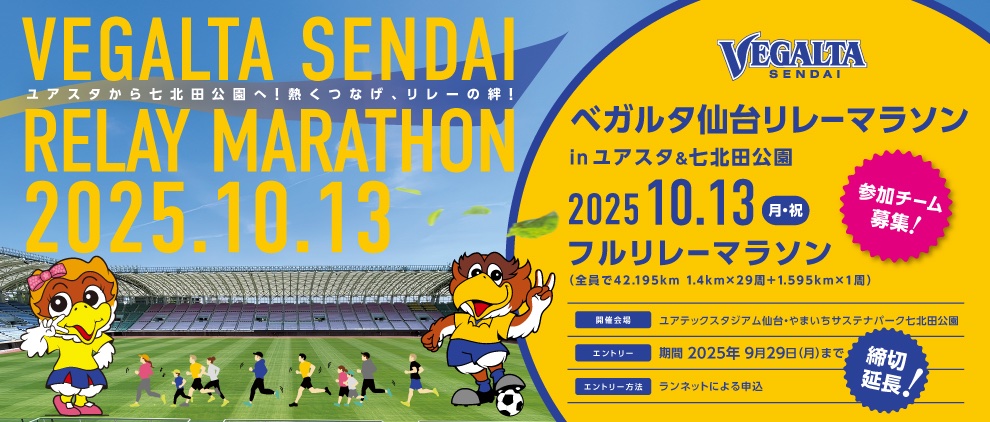 10月13日(日)、ユアテックスタジアム仙台にて 「ベガルタ仙台リレーマラソン」 を開催します!